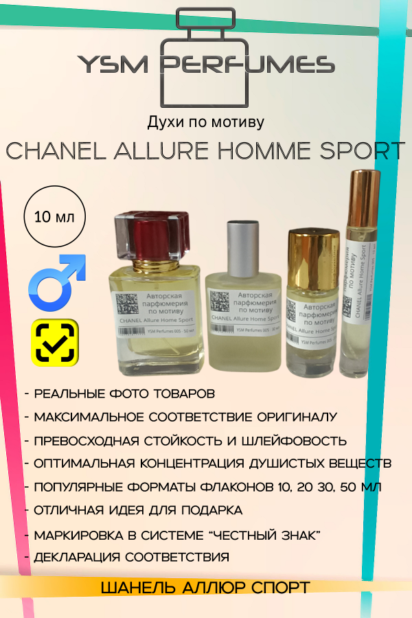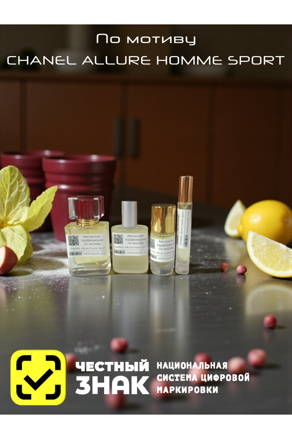 Allure Homme Sport (прозрачный флакон) — очень легкий, цитрусовый, одеколон, держится меньше. Allure Homme Sport (темно-серый флакон) — более плотная, сладкая и мятная версия с усиленной нотой бобов тонка.Eau Extrême