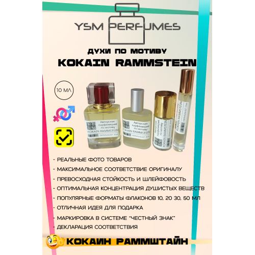 Аромат Kokain от немецкой группы Rammstein — это провокационный парфюм, выпущенный в 2019 году. Он позиционируется как унисекс и относится к группе фужерные кожаные.