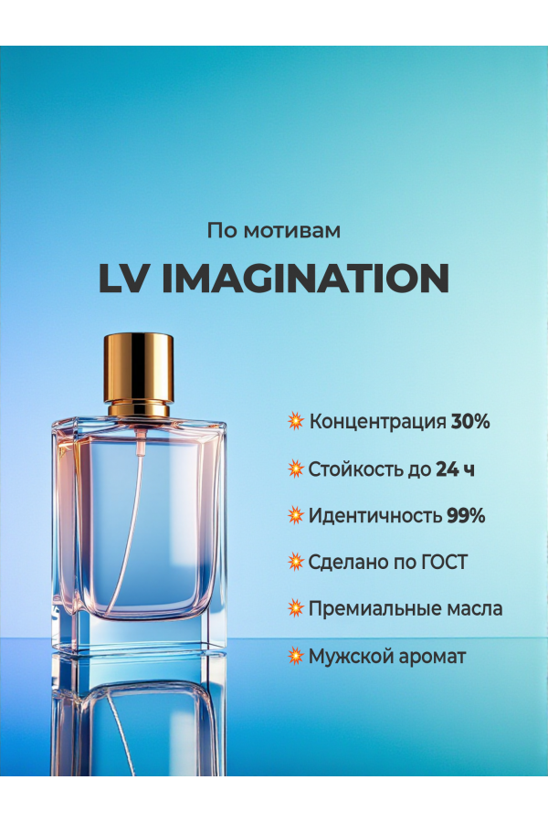 Позвольте себе роскошь, которая вдохновляет. Наша версия Imagination от Louis Vuitton — это воплощение элегантности и мужского обаяния. Аромат, который пахнет успехом, чистотой и уверенностью.