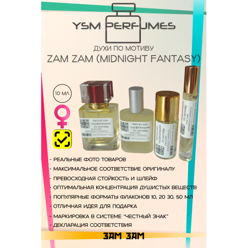Аромат Midnight Fantasy от бренда ZAM ZAM (часто представлен в виде масляных духов/аттаров) — это, как правило, качественная версия или аналог знаменитого одноименного аромата от Britney Spears.